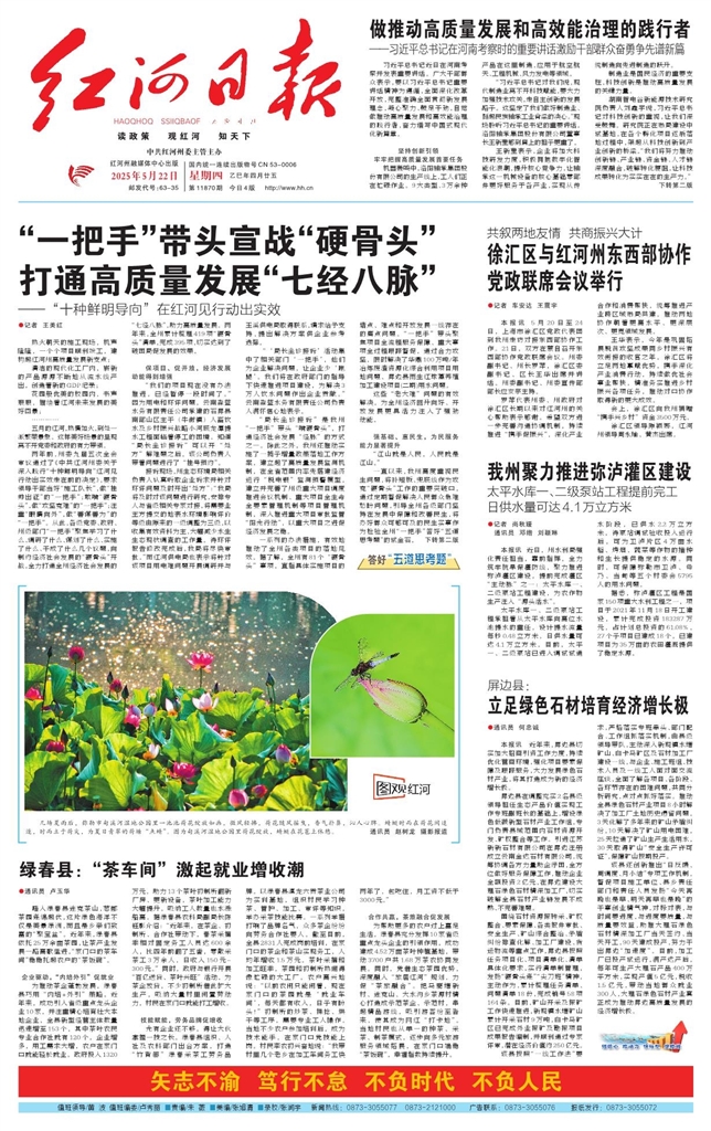 - “一把手”带头宣战“硬骨头” 打通高质量发展“七经八脉” ●记者 王美红 热火朝天的施工现场,机声隆隆,一个个项目顺利竣工,建构起红河州高质量发展新支点; 清洁的现代化工厂内,崭新的产品源源不断地从流水线产出,创造着新的GDP纪录; 花园般优