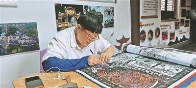 走进南正街105号民居,非物质文化遗产代表性传承人董庚华正在创作剪纸作品——“双百梅花诗”。手指翻飞间,朵朵梅花渐次绽放。这座百年老宅如今已成为集剪纸、雕刻、印染等传统技艺于一体的文化传承基地,非遗体验活动在这里定期开展,吸引了众多市民和中小学生参与。