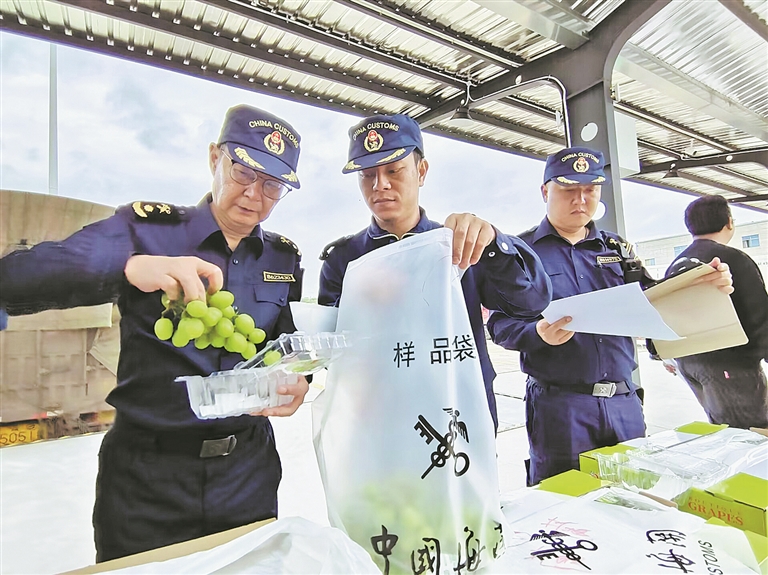 据蒙自海关监管科科长陈锐介绍,蒙自海关依托红河综保区出口农产品综合服务中心,将监管模式由“分散式”转变为“集中式”,为企业提供查验、证书签发及企业资质备案等业务一站式服务。这一模式实现了农产品出口的“半小时”通关,大幅降低了企业的物流和运营成本。此外,蒙自海关还搭建了“属地海关+口岸海关”的联动机制,通过数据互通、执法互助,全流程畅通出口农产品的“绿色通道”。今年1月至4月,红河州出口农产品贸易额达15.8亿元,同比增长3.1倍,分别占同期红河州出口额及外贸额的60.7%、34%。其中,水果出口额达10.4亿元,同比增长6.5倍;蔬菜出口额达3.3亿元,同比增长3.5倍。