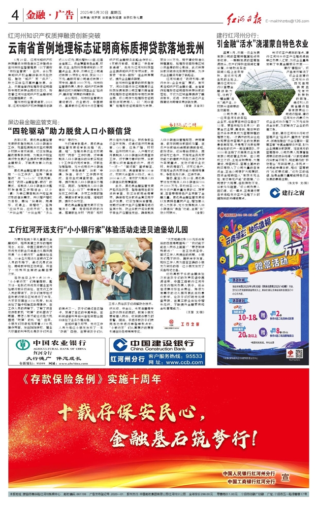 - 引金融“活水”浇灌蒙自特色农业 盛夏5月,云南一农业发展有限公司的蓝莓种植基地迎来丰收季。一颗颗饱满的蓝莓挂满枝头,农户们穿梭在田间忙着采摘,冷链物流车在田间公路上往来穿梭。在这片充满生机的土地上,建行红河州分行以普惠金融创新为