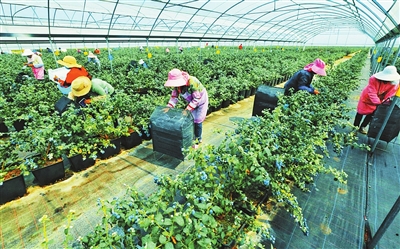 采摘蓝莓。 图片由蒙自市委宣传部提供
