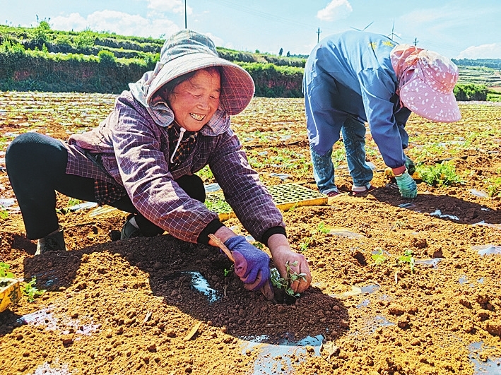 本报讯 随着雨季来临,泸西县三塘乡的种植户也迎来了当归栽种的好时节。田间地头,随处可见村民忙碌的身影,起垄、覆膜、运苗、栽苗、浇水等工序有条不紊,为今年的当归丰收打下坚实基础。