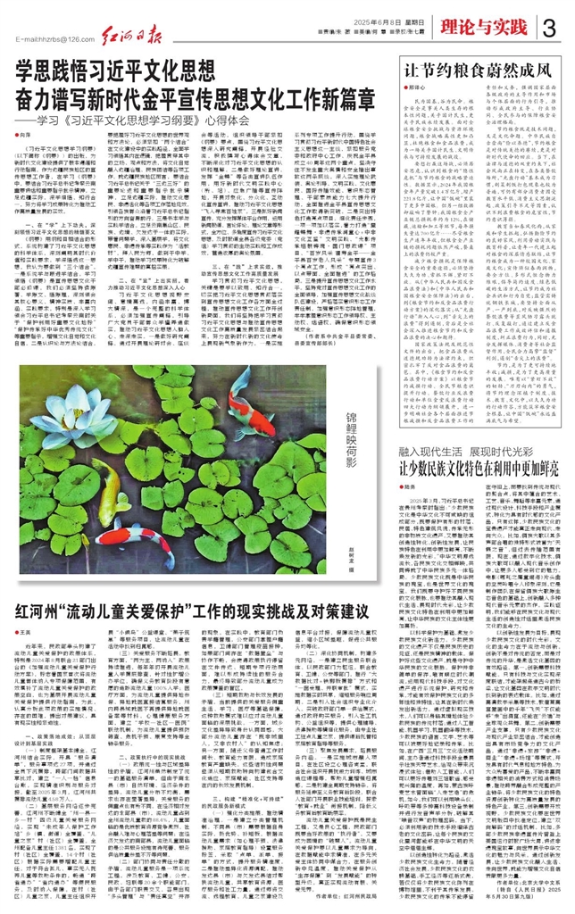 2025年3月,习近平总书记在贵州考察时指出:“少数民族文化是中华文化不可或缺的组成部分,既要保护有形的村落、民居、特色建筑风貌,传承无形的非物质文化遗产,又要推动其创造性转化、创新性发展,让民族特色在利用中更加鲜亮,不断焕发新的光彩。”中华文明源远流长,各民族文化交相辉映,共同铸就了中华民族多元一体格局。少数民族文化既是中华民族的瑰宝,也是世界文化的瑰宝。我们既要守护好不同民族的文化根脉,也要推动其融入现代生活、展现时代光彩,让少数民族文化特色在利用中更加鲜亮,让中华民族的文化主体性更加高扬。