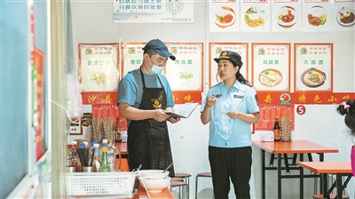 高考期间,我州市场监督管理部门加强住宿、餐饮和培训市场的监管,净化考试环境。图为蒙自市市场监督管理局工作人员在蒙自一中周边开展相关检查。