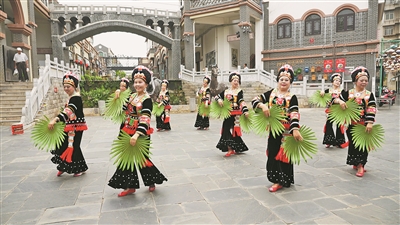 “我们的《棕扇情》节目排练了很久,融入了哈尼族文化元素。希望通过我们的舞蹈,让观众感受到民族文化的美,感受到我们永远保持着对生活、对艺术的热爱。”文艺队队长施毅说。