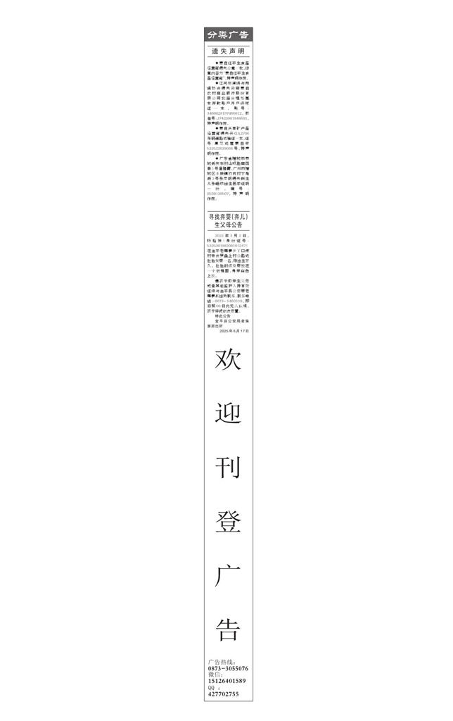 • 欢迎刊登广告   广告热线:   0873-3055076   微信:   15126401589   QQ:   427702755