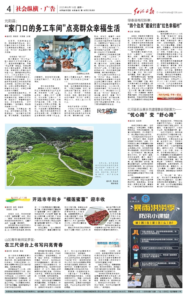 - “忧心路”变“舒心路” ●通讯员 张丽萍 走进红河县石头寨乡,各村的道路上一片繁忙景象,挖掘机轰鸣作业,村民们扛着铁锹、推着小车来回穿梭,汗水浸湿了衣衫,却丝毫挡不住脸上的干劲。 “这条路坑洼泥泞已经好多年了,雨