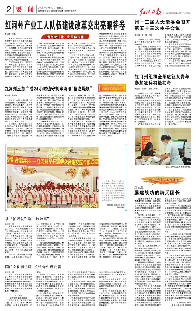 - 红河州产业工人队伍建设改革交出亮眼答卷 ●记者 周勇 本报讯 近年来,红河州积极探索产业工人队伍建设改革路径,创新推出“9432”模式,围绕思想引领、建功立业、素质提升、地位提高、队伍壮大等方面精准发力,不断压实责任,协同推进改革