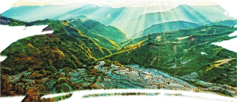 夕阳往梯田上泼了层金,田水映着霞光晃,“赶沟人”巡渠的影子被拉得老长。从“稻鱼鸭”的田垄到阿者科的蘑菇房,从红米加工的车间到绣着稻穗的帕子,哈尼人把绿水青山的巧思,织进了田垄间、日子里,让千年梯田结出了一串又一串的“致富穗”。