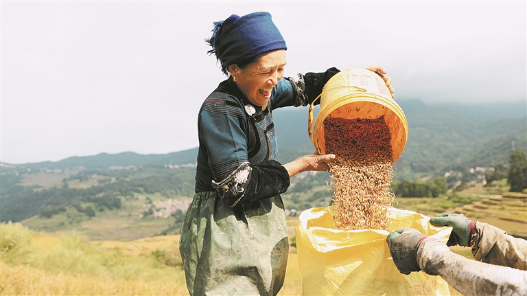 为了让红米“走得远”,当地盯着质量做品牌:规范使用世界遗产标识,找龙头企业做订单收购,3.9万名种植户跟着沾了光。有了稳定的收购渠道,不必再为销路犯愁,红米从地头到车间的产业链顺畅了,农户的收入也跟着稳了。不光是红米,哈尼刺绣、竹编、银饰这些老手艺也跟着火了——乡(镇)上设有售卖点,不少农户守着家就能靠手艺挣钱,既顾得上老人孩子,又能把祖辈的手艺传下去。