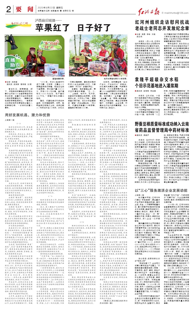 - 以“三心”服务激活企业发展动能 上接第一版 针对重点项目,红河州专门建立“绿色通道”,健全重点产业项目协同推进机制,提升土地、资金、人才等要素配置效率,着力破解项目推进中的堵点卡点问题,确保项目早开工、早建设、早见效。同时,