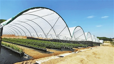 在基地建成的50余亩智能大棚里,物联网系统调控着光照、通风和灌溉。3月栽种的蓝莓苗预计11月投产,亩产可达2吨,年总产量1080吨。“十带一”模式让村集体跟着受益,分红比例让每亩收益预计达4万元,还能提供超1000个岗位,农户年增收约800万元。