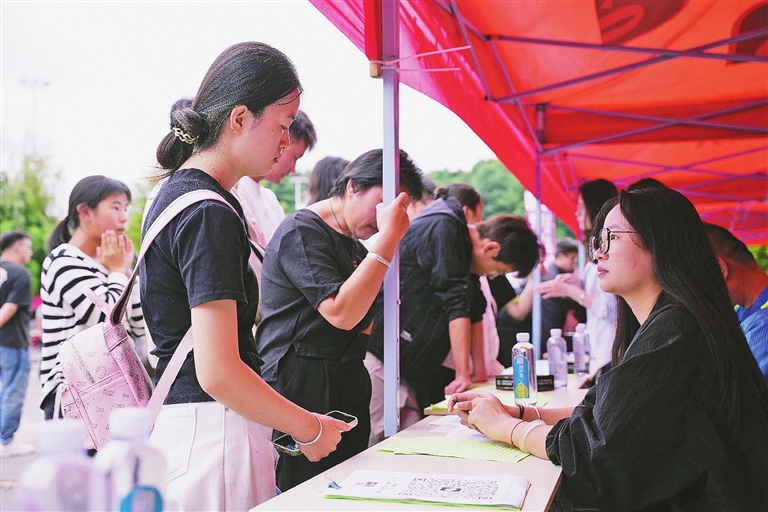 81个一字排开的企业招聘展位前,数千名求职者排起长队,仔细浏览招聘信息,向心仪的企业投递简历……招聘会现场热闹非凡。