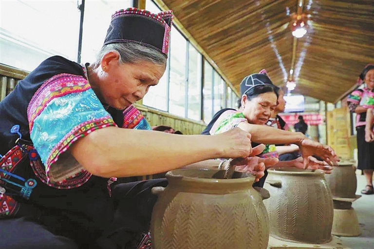 在元阳县南沙镇的那里村,70岁的李秀芬正用布满老茧的双手,将红河岸边的黏土搓成细长的泥条。这项始于清朝的泥条盘筑制陶技艺,在李秀芬的手中得以延续,正以“非遗+文旅”的方式焕发新生。