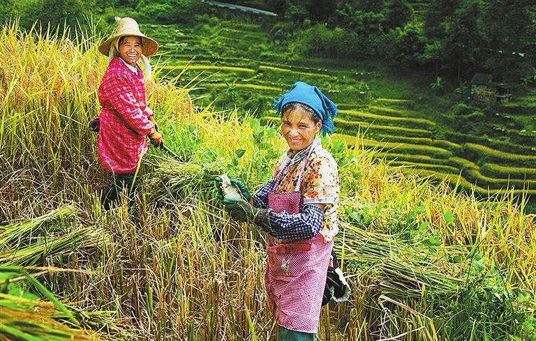 丰收的喜悦不仅在田间,还洋溢在阿者科村的小广场上。