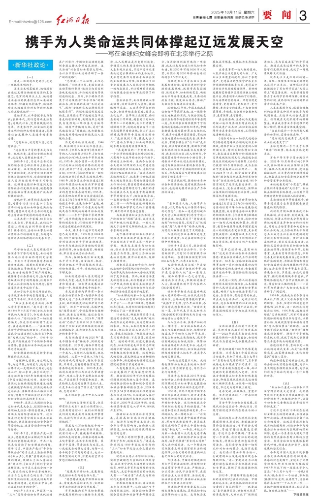 在这“历史的一瞬”,妇女事业越来越成为一项“全球性系统工程”。它超越语言与地域的界限、制度与文化的差异,在不同民族、不同国家之间织起友谊合作的纽带。它同“生存与繁衍”“战争与和平”等人类基本命题息息相关,也与可持续发展、数字变革、气候变化等时代新课题深度联动。