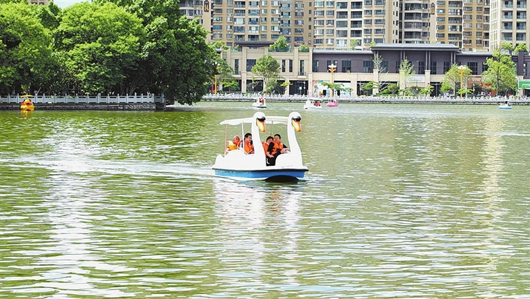 除了咖啡与书香,南湖游船也成为这个双节假期的热门打卡项目。在南湖公园的码头边,不少家庭排着队等待登船,想乘着小船游览南湖,换个角度欣赏蒙自的美景。