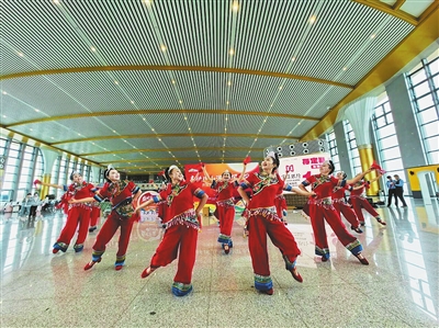 本报讯 国庆、中秋双节期间,一场以“高铁连山海 家国共团圆”为主题的文化旅游志愿服务活动在红河站候车大厅内温情上演,红河州文化馆马缨花艺术团的志愿者用精彩的文艺演出,为往来旅客送上独具红河特色的节日祝福,让旅途充满文化的温度与温情。