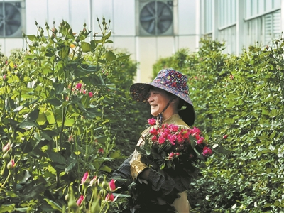 开远国家现代农业产业园自2016年建成以来,锚定高端花卉发展方向,逐步形成集科研、生产、加工、销售于一体的全产业链体系。今年上半年,产业园核心区鲜切花产销2亿枝,生产销售种苗3亿株、盆花400万盆,花卉产业综合产值达13亿元。图为工人在采收鲜花。