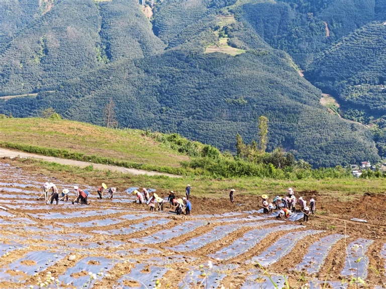 金秋十月,绿春县大黑山镇搬布村的田野间一派生机盎然。翠绿的南瓜藤顺着田垄蜿蜒舒展,为曾经闲置的撂荒地披上了“绿衣裳”。