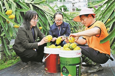 石屏县纪委监委紧盯特色产业发展中的堵点、难点问题,主动下沉一线,推动乡镇相关部门通过组织技术培训、开展交流学习等多种形式提升果农种植管理水平。图为纪检监察干部在该县大桥乡燕窝果种植基地了解相关情况。