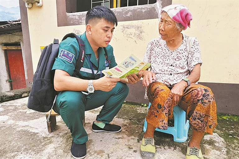 本报讯 清晨的屏边县白河镇,山间小路上总能看见身着“健康绿”的身影。他们背着装满B超机、心电图仪等设备的“健康背包”,踏遍村寨院落,将专业医疗服务送到群众“家门口”。这是白河镇中心卫生院创新推行的“背包式家签服务”,还是当地“党建+基层医疗”融合发展的鲜活实践,他们用脚步稳稳丈量出健康中国的“最后一公里”。