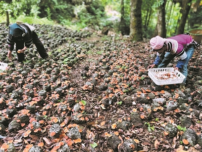 依托高森林覆盖率与湿润气候条件,乐育镇探索出“正季野生菌+反季食用菌”的生态循环模式。经过3年培育,形成以小香菇、羊肚菌等为代表的林下食用菌种植体系,实现“零化肥、零农药”的绿色生产模式。在品质管控方面,乐育镇通过了多项质量认证,打造“乐育甄选”区域公共品牌,并以“龙头企业+村集体公司+农户”的利益联结机制,构建起风险共担、利益共享的产业共同体。