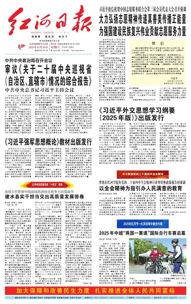 - 以全会精神为指引办人民满意的教育 ●云南日报记者 饶勇 11月26日,省委常委、宣传部部长曾艳在红河学院作党的二十届四中全会精神宣讲暨形势政策报告。 曾艳强调,要深入学习贯彻习近平总书记在全会上的重要讲话精神和审议通过的