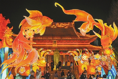 2025年12月30日,市民游客在南京市秦淮区夫子庙大成殿景点参观各种灯彩。2026新年即将到来,南京市秦淮区夫子庙大成殿景点的灯彩灯组陆续点亮,为市民游客献上视觉盛宴。