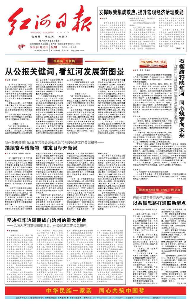 - 从公报关键词,看红河发展新图景 ●记者 车安达 在“十四五”圆满收官、“十五五”扬帆启航的关键交汇点,1月7日至8日,州委九届十次全会在蒙自举行。会议审议通过《中共红河州委关于制定红河州国民经济和社会发展第十五个五年规划的