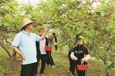 “今年我是第二次来樱桃园了,这里的玛瑙红樱桃又大又红又甜。”正在樱桃园里采摘樱桃的张香笑着说。
