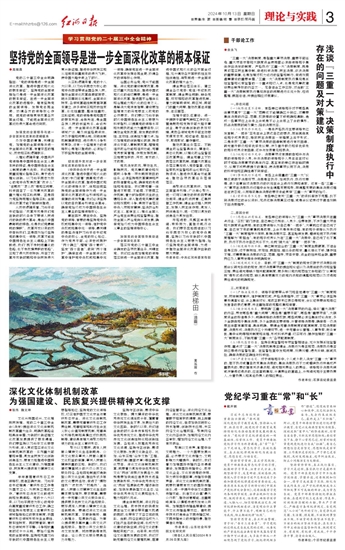 (三)制度规定不完整。目前,对“三重一大”制度的规定仅限于对决策阶段即会议研究阶段的规定,而对决策事项的提出和论证以及决策后的执行和监督实施、责任追究等缺少相关配套制度,更多则以党内规范性文件和部门“议事规则”等形式进行规范,缺乏具有更高效力的党内法规的调整和规范以及对违规责任追究的明确规定。