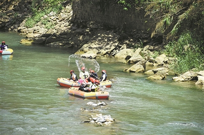 本报讯 屏边县湾塘乡依托南溪河独特的山水资源禀赋,因地制宜开发漂流项目,催生出南溪河“水上经济带”,在绿水青山间绘就村民共富新画卷。