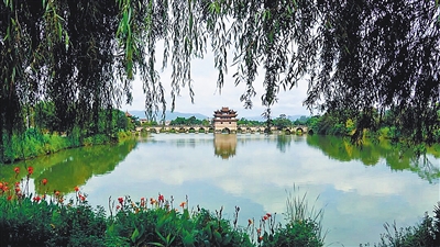 《建水州志》记载:“泸江烟柳”得名于明清时期。每逢春夏,这里河岸密柳成荫,荷香清远,轻烟朦胧,形成了一幅天然的水墨画卷。这条河流不仅是建水的母亲河,而且是连接滇南地区的重要水系,在历史上发挥着重要的航运和灌溉功能。