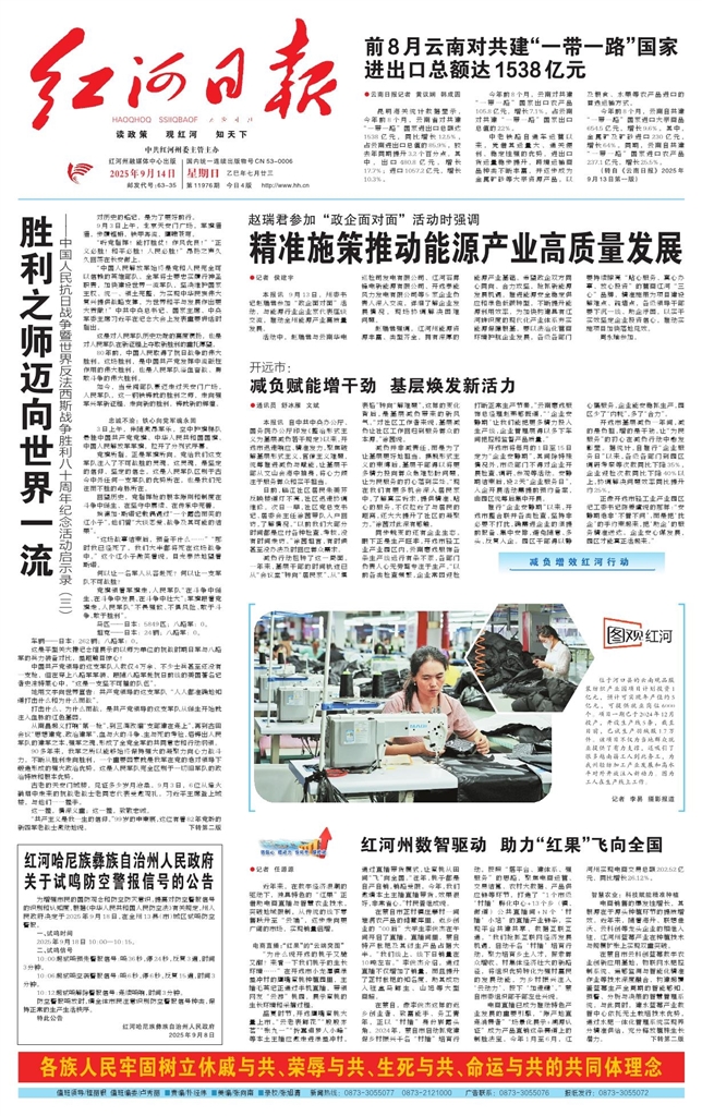 - 精准施策推动能源产业高质量发展 ●记者 侯建宇 本报讯 9月13日,州委书记赵瑞君参加“政企面对面”活动,与能源行业企业家代表座谈交流,推动全州能源产业高质量发展。 活动中,赵瑞君与云南华电巡检司发电有限公司、红河石