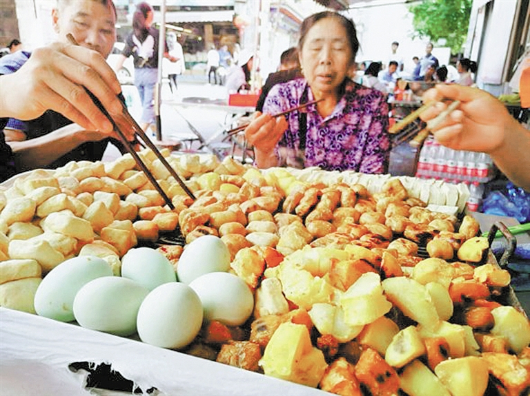 暮色降临时,紫陶街的夜便热闹起来。炸洋芋的摊子支起大铁锅,土豆削皮切块,在滚油里炸至金黄,撒上辣椒面、芝麻、芫荽,咬一口外酥里糯,咸香里带着土豆的甜;烤乳扇的阿婆用竹筷挑起乳扇,在炭火上快速翻烤,乳脂遇热融化滴在炭火上“滋啦”作响,裹上玫瑰糖后甜香四溢。沿街的紫陶铺里,刻画着精美图文的紫陶壶在月光下泛着温润的光泽,若逛累了,随便走进一家店铺讨杯茶喝——无论是普洱还是滇红,配着陶杯的古朴,茶汤红亮如琥珀,入喉回甘,连茶香都多了几分岁月感。