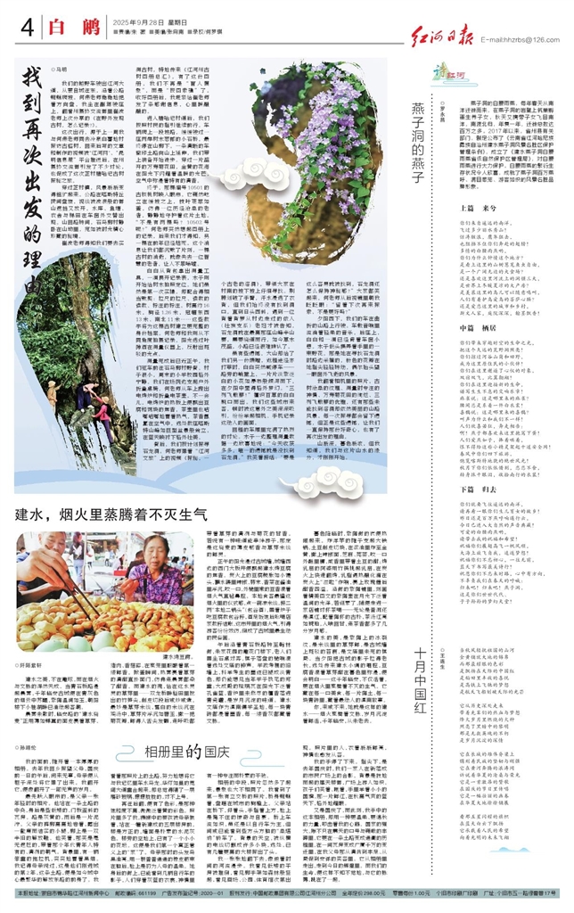 - 找到再次出发的理由 ◎马明 我们的越野车驶出红河大道,从蒙自城往东,沿着公路蜿蜒爬坡。何伟老师稳稳地把着方向盘,我坐在副驾驶座上,翻看州摄协交流群里崔波老师上次分享的《在野外发现古树,怎么记录?》。 这次出行
