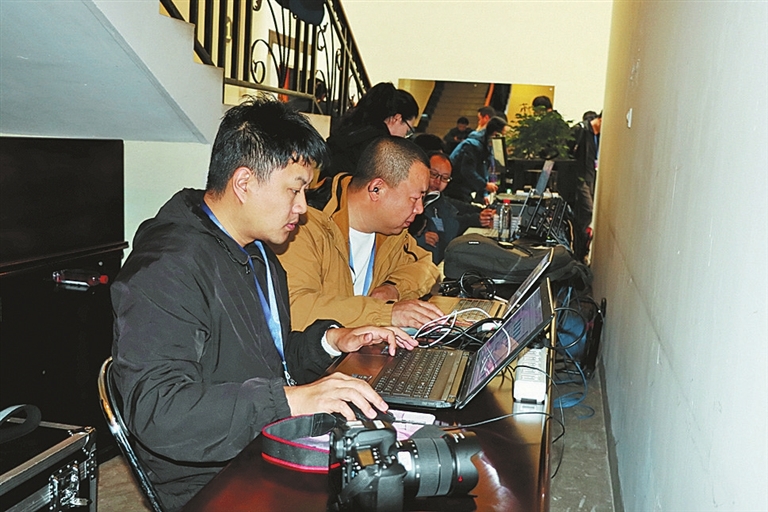 天微亮,红河会堂的晨光里,早已跃动着融媒人的身影。红河州融媒体中心的采编播团队全员集结、各就各位,迅速进入“战斗状态”:摄像记者稳稳架起摄像机,镜头精准锁定会场每一个关键瞬间;文字记者手持采访本,上面密密麻麻地记满了前期梳理的提问方向,眼神专注地紧盯会议进程;技术人员围着直播设备反复调试、逐项检查,不放过任何一个细节,全力确保直播信号稳定、画面清晰流畅。